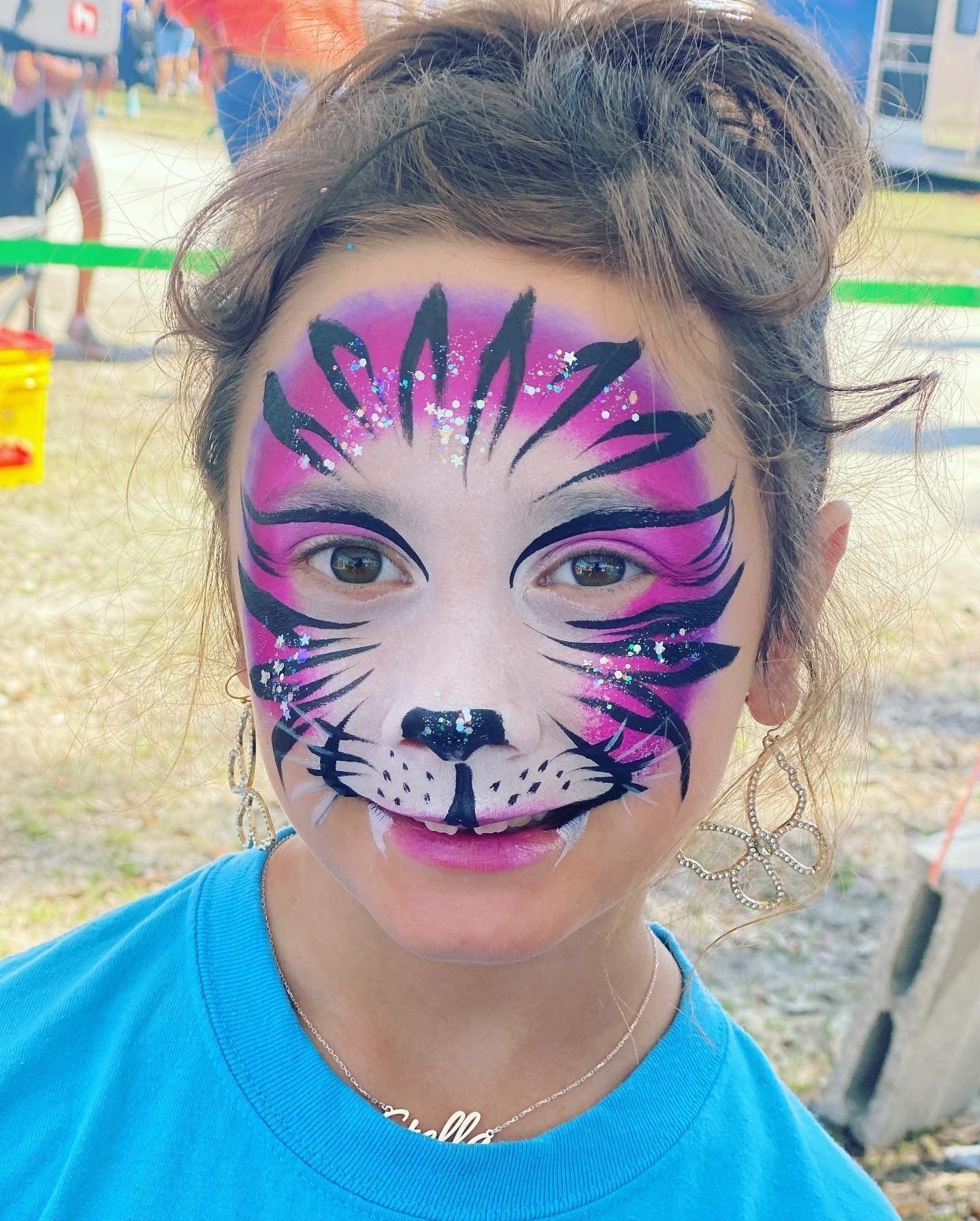 We offer a wide range of face painting desings and can fit any party theme; princesses, pirates, unicorns, circus, animals, Day of the Dead, Halloween, scary, wild or pretty.